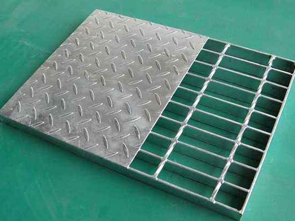 復合鋼格板是由一定具有橫跨承載能力鋼格板及表面密封的花紋鋼板或鋼網構成的一種鋼格板新產品。復合鋼格板可以由任何一種型號的鋼格板和不同厚度的工化紋鋼板構成。但最常用的是使用G323/40/100鋼板作低板;3mm厚的花紋鋼板,也可采用4mm,5mm或6mm的花紋鋼板。復合鋼格板常用系列3(扁鋼間距60mm)鋼格板作底板,也可采用系列1(扁鋼間距30mm)或系列2(扁鋼間距40mm)鋼格板;花紋鋼格板常用3mm厚板,也可采用4mm,5mm、6mm的板。