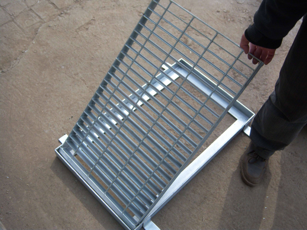 (2)、國內(nèi)先進的防蓋設(shè)計:由鋼格板制作的水溝蓋與框用鉸鏈聯(lián)接,防盜,安全,開啟方便